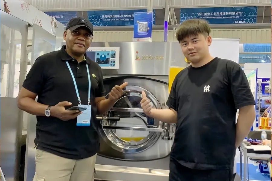 在已圓滿結(jié)束的第一期“先進(jìn)制造”主題展會(huì)中,江蘇海獅機(jī)械股份有限公司作為工業(yè)洗滌機(jī)械領(lǐng)域的領(lǐng)軍企業(yè),積極參與了本屆廣交會(huì),并向海內(nèi)外參會(huì)者展示了海獅產(chǎn)品的精湛工藝和卓越品質(zhì),贏得廣泛贊譽(yù)。曾經(jīng)購(gòu)買(mǎi)過(guò)海獅設(shè)備的老客戶(hù),此次也特意前來(lái)參觀。他們紛紛表示,海獅機(jī)械的產(chǎn)品質(zhì)量過(guò)硬、節(jié)能效果顯著,即使在當(dāng)?shù)貒?yán)苛的氣候環(huán)境下,海獅的水洗機(jī)、烘干機(jī)、洗衣龍系統(tǒng)、后整理設(shè)備都能保持穩(wěn)定運(yùn)行,交出滿意的工作表現(xiàn)。